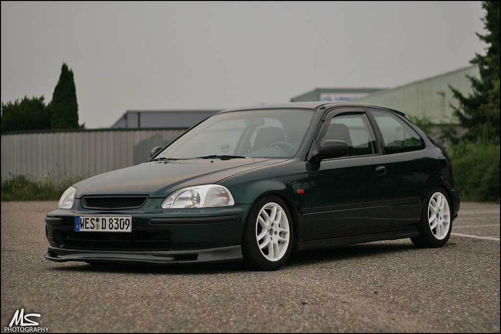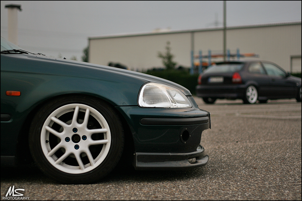 Dave's 96er Civic Hatchback. Auch ein Vertreter unserer SOHC-Fraktion. Zur Zeit 'ne kleine Baustelle, aber bald wieder auf'm Track unterwegs.