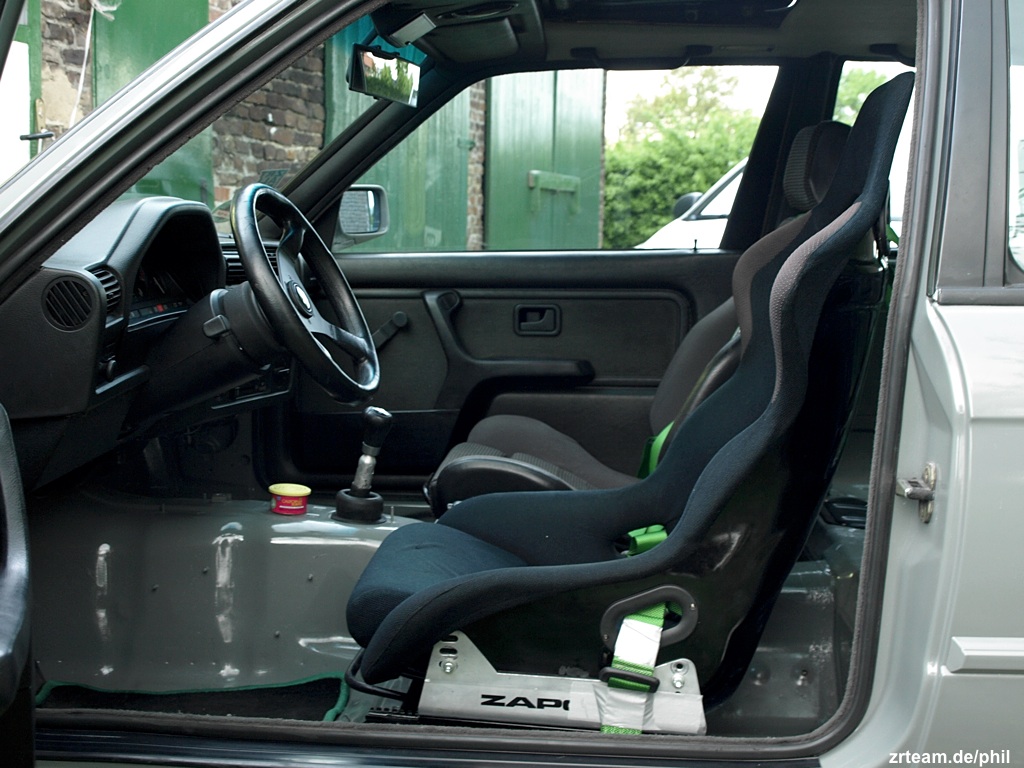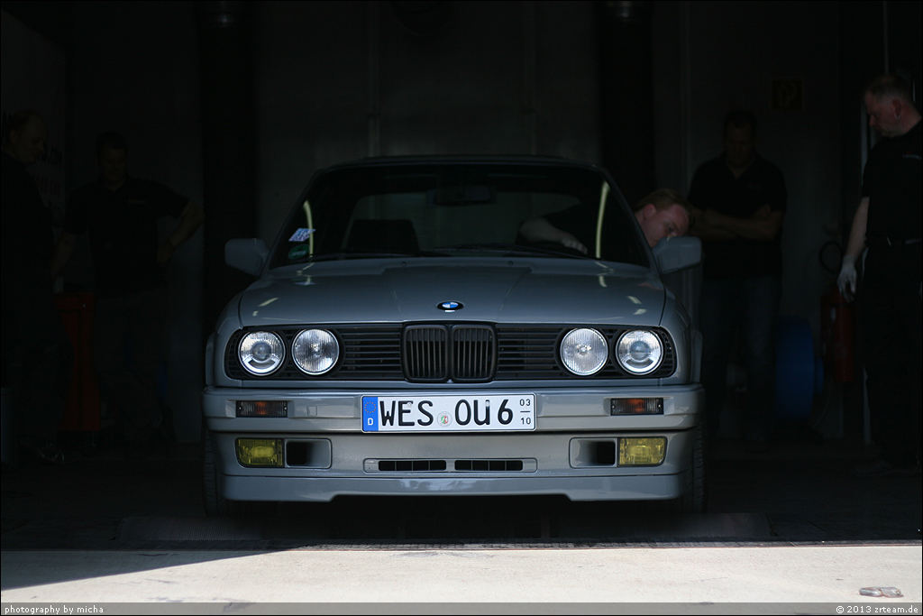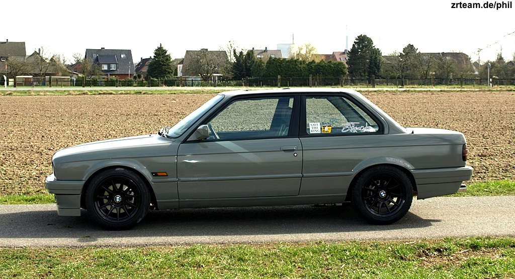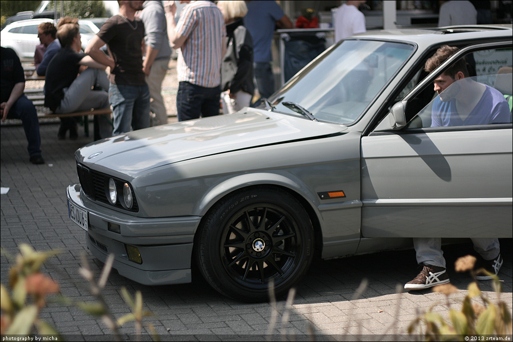 Phil's E30 BMW. Ausgestattet mit dem 3,5l 6Zylinder. Eher der etwas größere Motor in unserer Runde. Wieder unterwegs in neuem grauen Glanz.